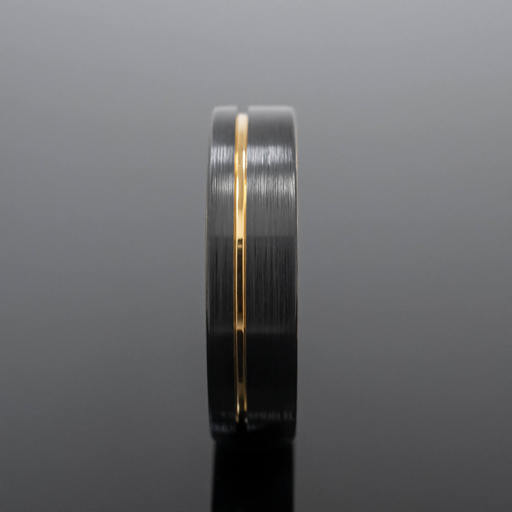 Black Gold Obsidian Tungsten Wedding Band, Brushed - in 6mm Width