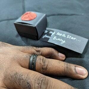 a handmade 8mm Black Sandblasted Meteorite tungsten Wedding Band