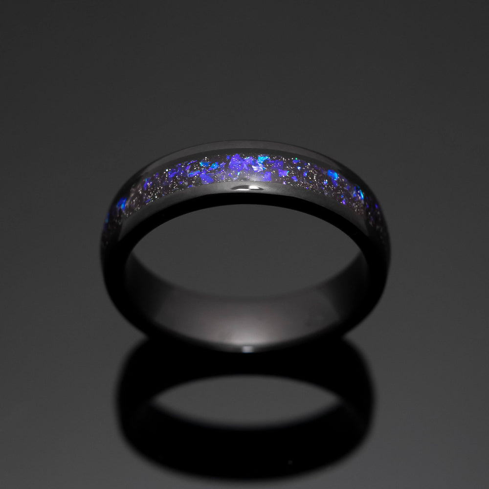 a handmade 6mm Black Polished Orion Nebula tungsten Wedding Band