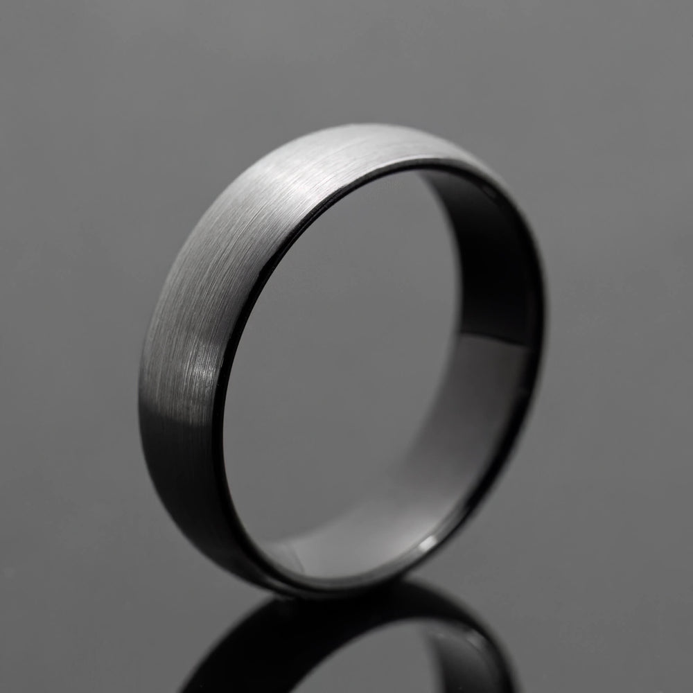 Silver Brushed Obsidian-style inlay Tungsten Wedding Ring - in 6mm Width