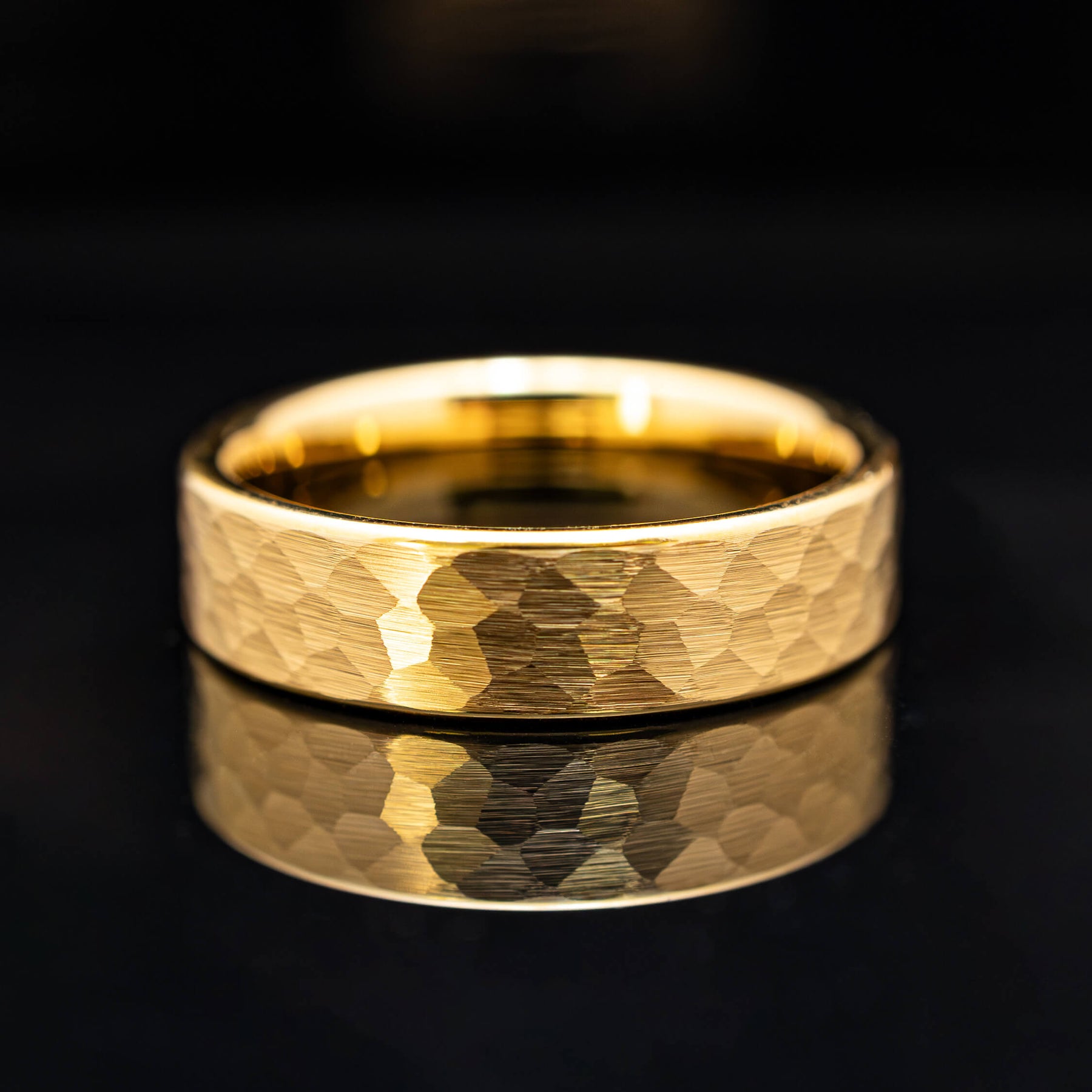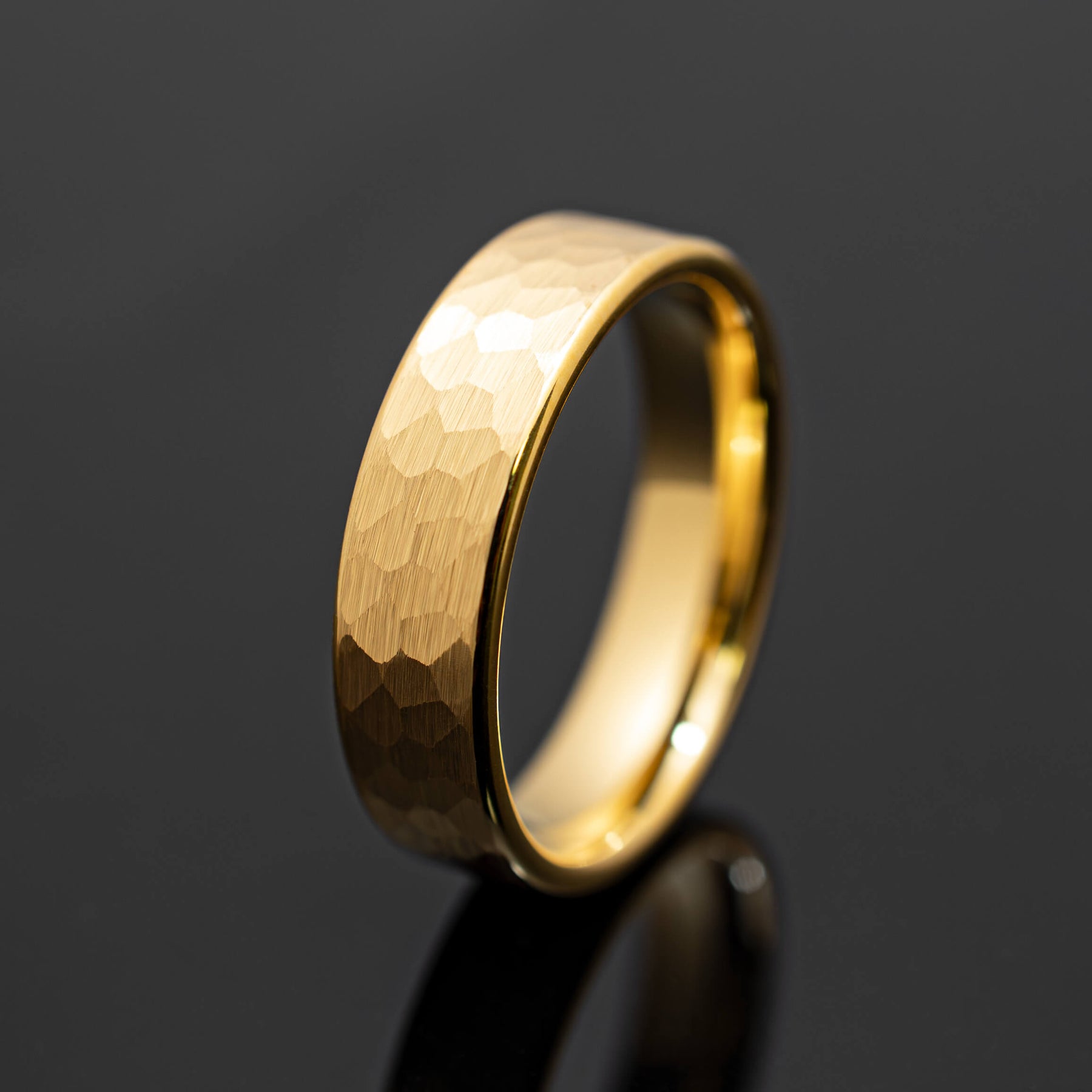 + One handmade 6mm Gold Flat Hammered Tungsten Wedding Band