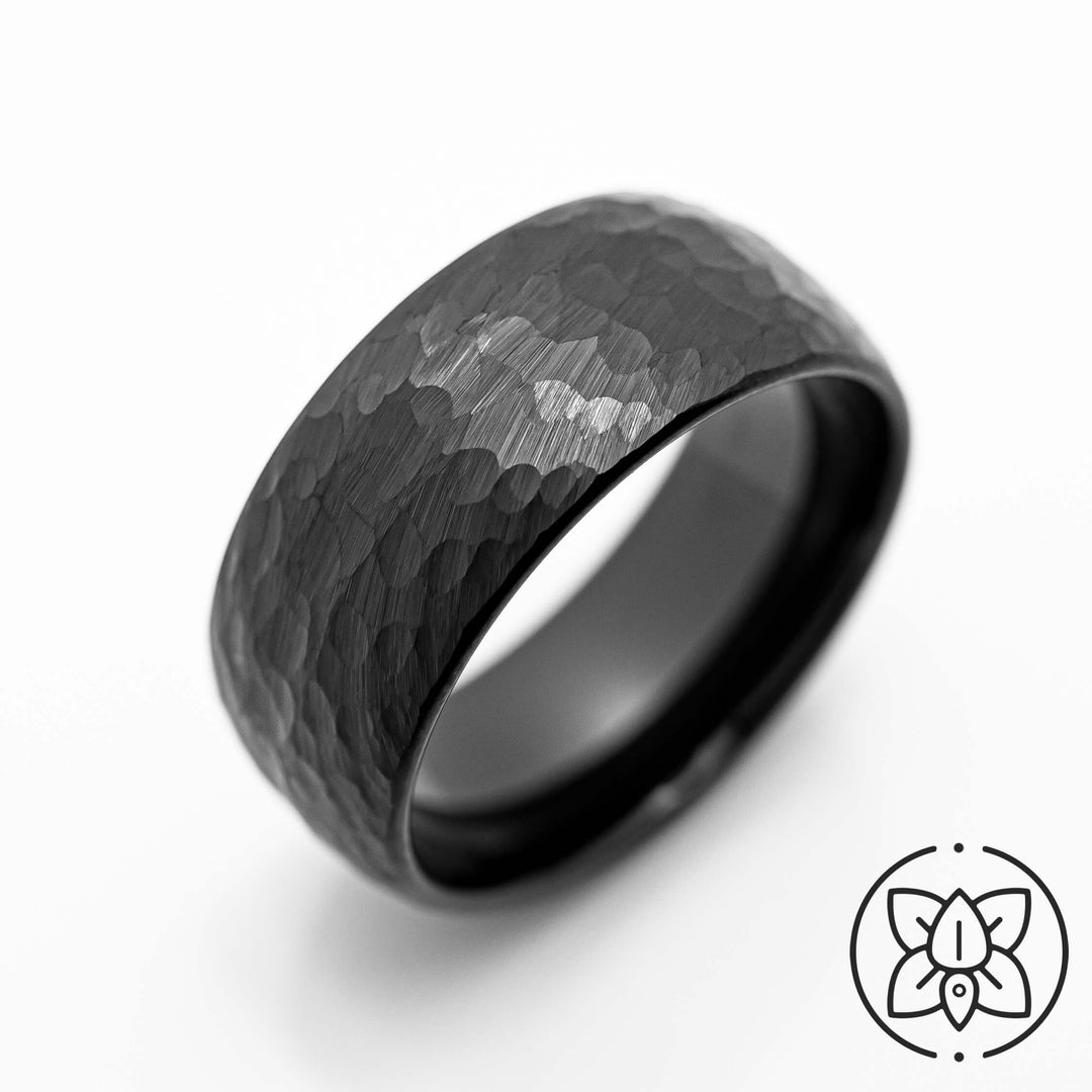 Black Hammered Meteorite Wedding Ring - in 6mm Width